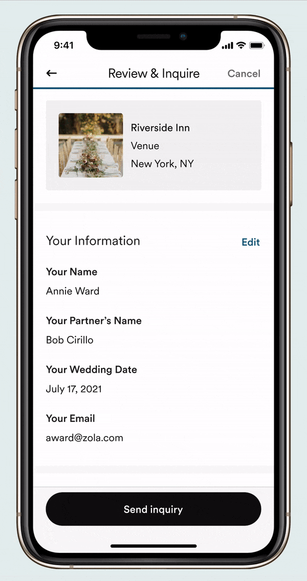 The more viable leads we can send to vendors, the more time and money both vendors and couples spend on Zola. Vendors pay to connect with promising leads, and couples that inquire with more vendors are statistically likely to use Zola for other tools and give Zola a higher NPS rating.